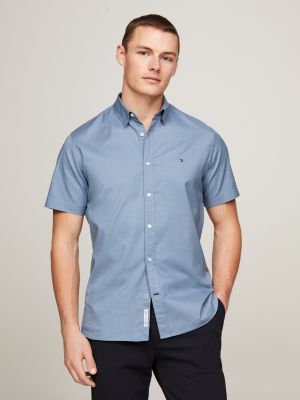 Tommy hilfiger short sleeve button clearance down shirt, Micro Print Regular Short Sleeve Shirt Blue Tommy Hilfiger clearance