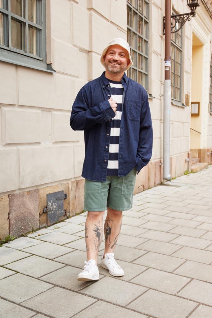 Check styling ideas for Denim Long Sleeve Shirt Geared Shorts 8