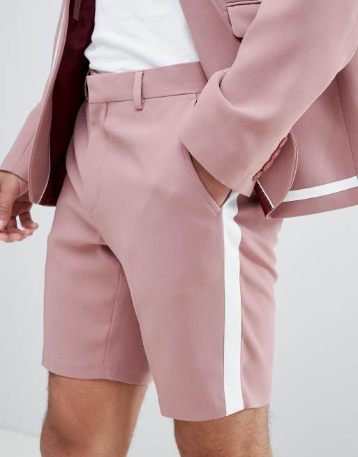 ASOS DESIGN skinny suit shorts in pink with white trim ASOS