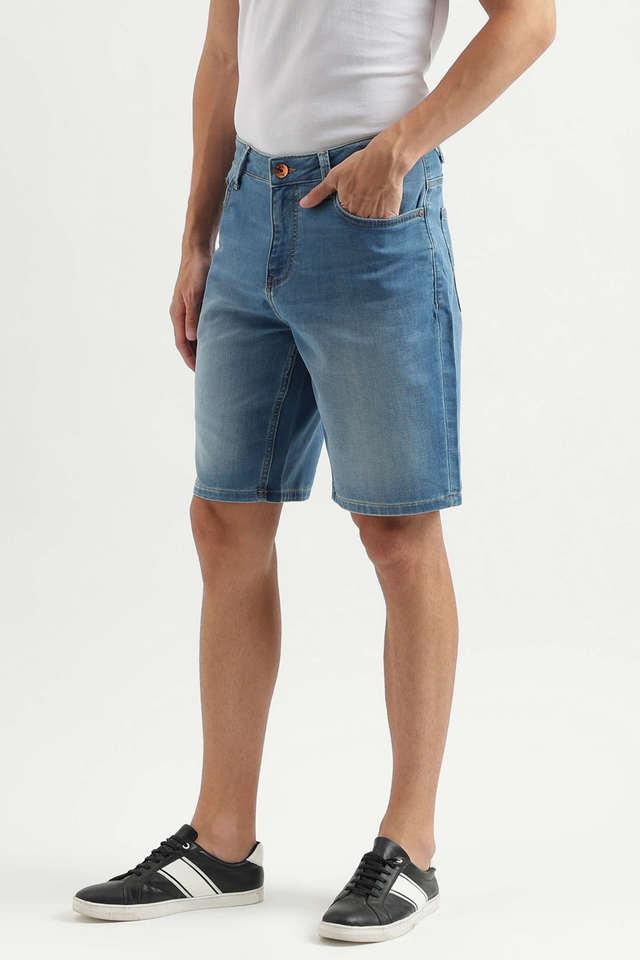 Buy UCB Solid Cotton Blend Slim Fit Men s Casual Shorts Shoppers