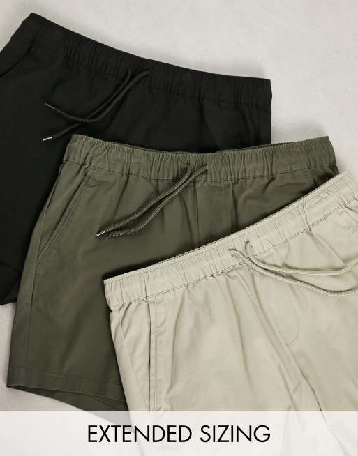 ASOS DESIGN 3 pack slim chino shorts in shorter length with
