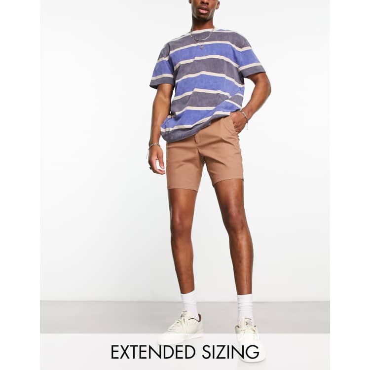 Asos mens chino clearance shorts, ASOS DESIGN skinny chino shorts in mid length in brown ASOS clearance
