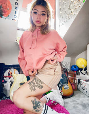 Adidas Originals New Neutrals Logo High Waisted Shorts In Beige
