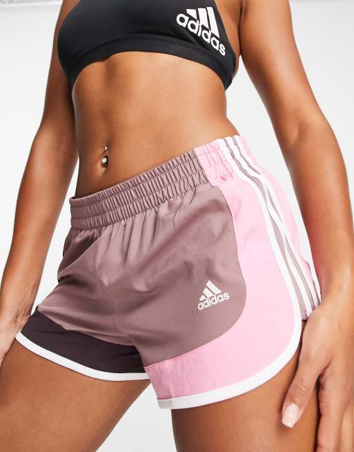 Jd pink adidas clearance shorts, adidas Running Own The Run colour block M20 shorts in brown ASOS clearance