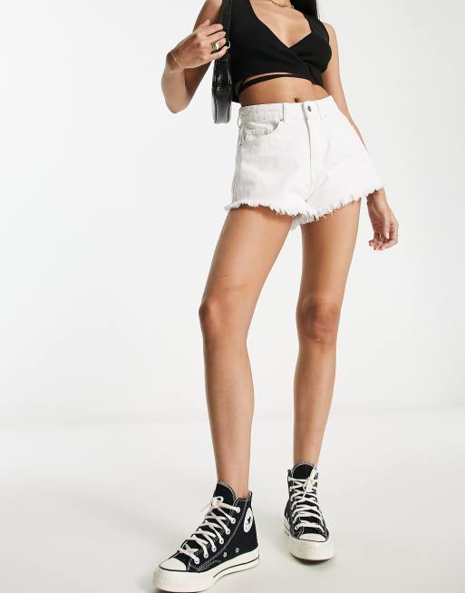 Miss Selfridge festival extreme fray denim short in white
