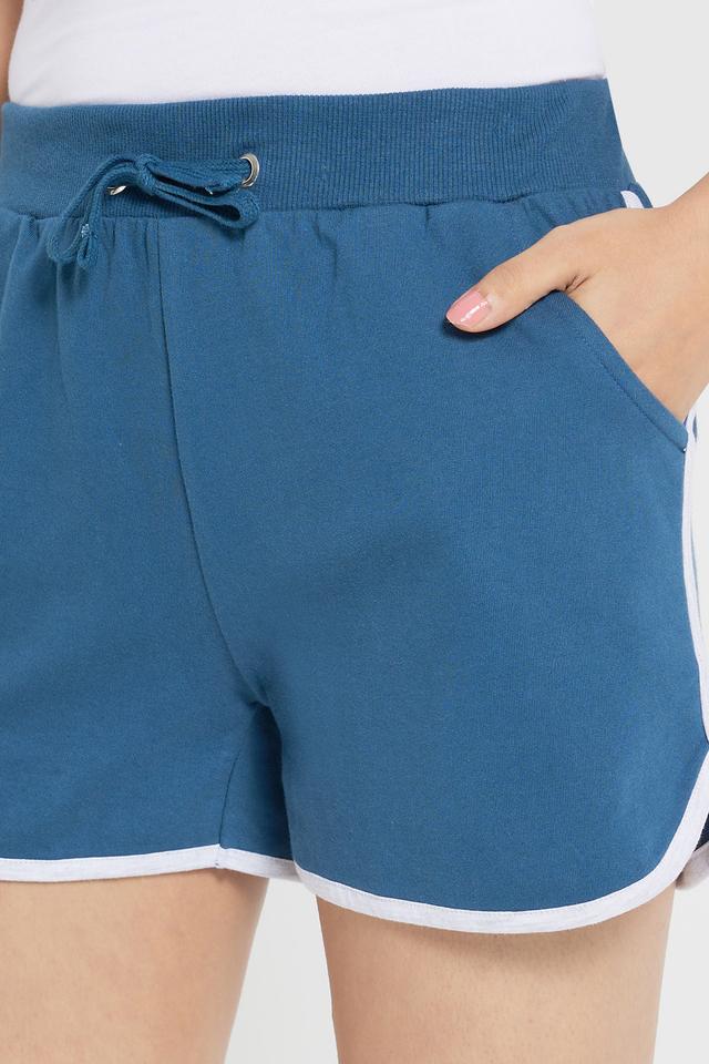Buy INTUNE Blue Blue Cotton Shorts for Women with White Piping