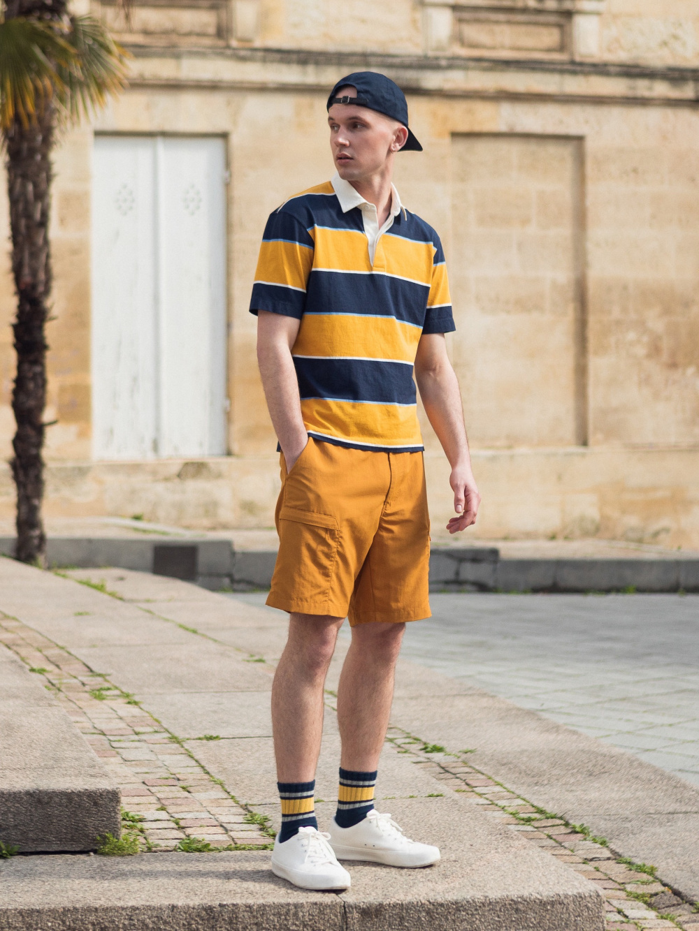 Check styling ideas for RUGGER STRIPED SHORT SLEEVE POLO SHIRT