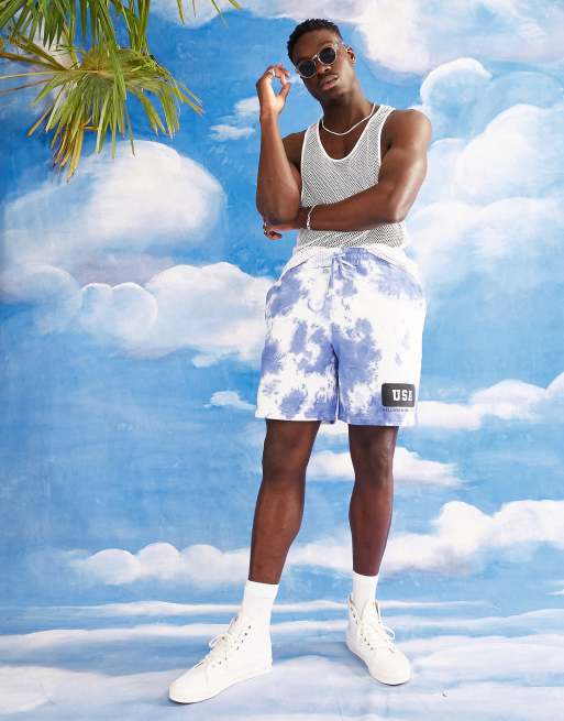 ASOS DESIGN relaxed tie dye shorts in blue and white with print ASOS