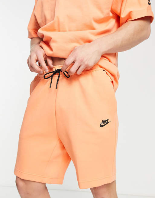 Nike orange fleece clearance shorts, Men s Nike Tech Fleece Shorts in Lobster Red Oneness Boutique clearance