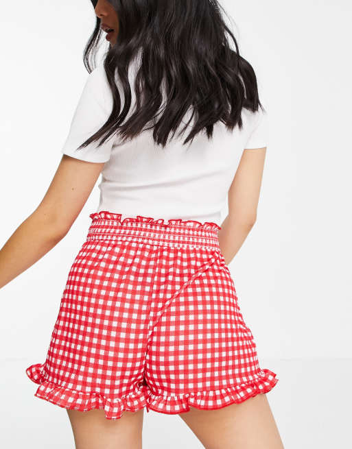 ASOS DESIGN Petite flippy short in gingham with ruffle hem in red