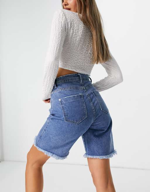Missguided longline denim clearance shorts in blue