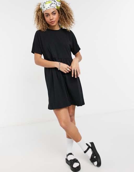 Noisy May cotton mini smock t shirt dress in black BLACK ASOS