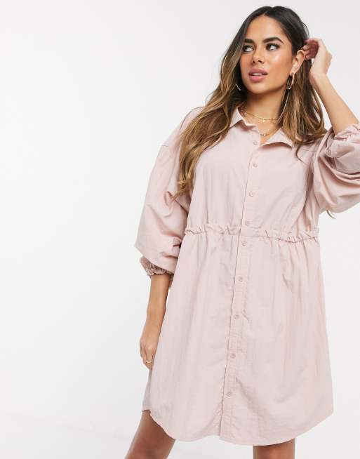 Gathered waist shirt clearance dress, Gathered Waist Mini Long Sleeves Shirt Dress clearance