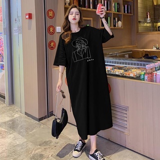 T shirt dress clearance korean style, Summer Korean Style Midi Dress Women Black Long Dresses Plus Size clearance