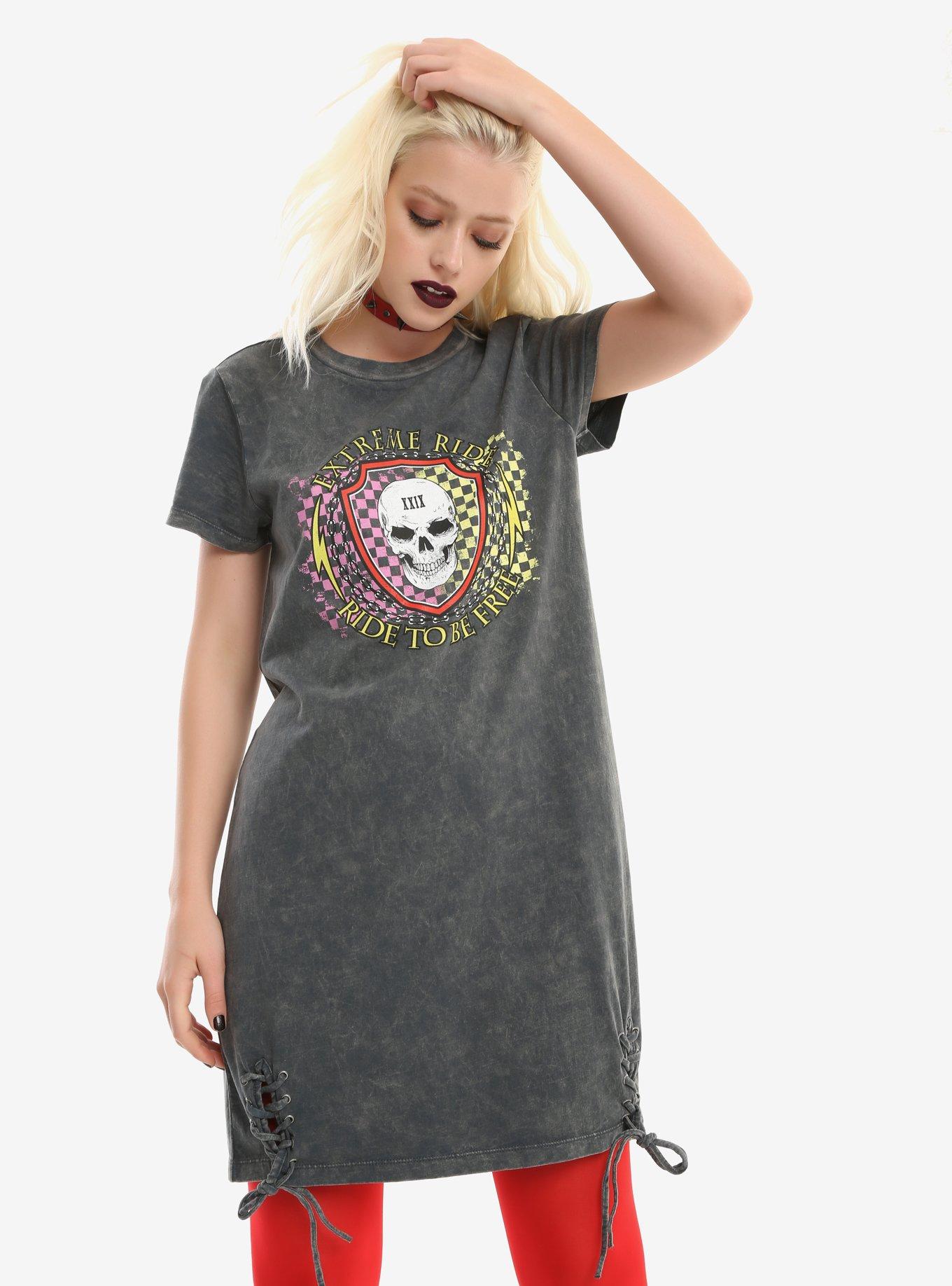 Grey Acid Wash Ride Free Skull T Shirt Dress Hot Topic