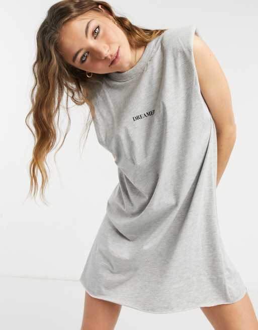 ASOS DESIGN padded shoulder sleeveless t shirt dress with dreamer