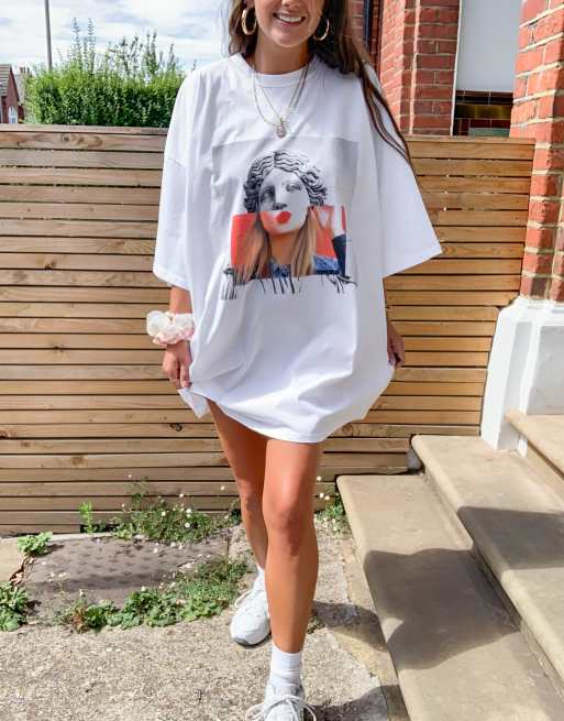 ASOS DESIGN oversized t shirt dress in white with abstract face