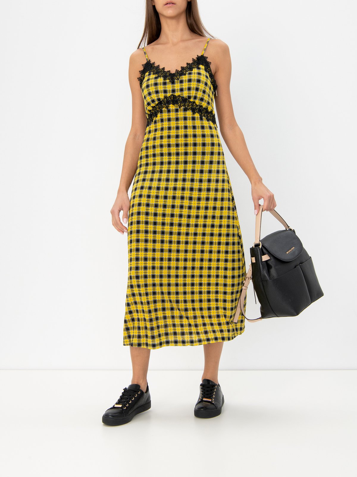 Yellow michael kors clearance dress, Michael Michael Kors lattice pattern Belted Midi Dress Farfetch clearance