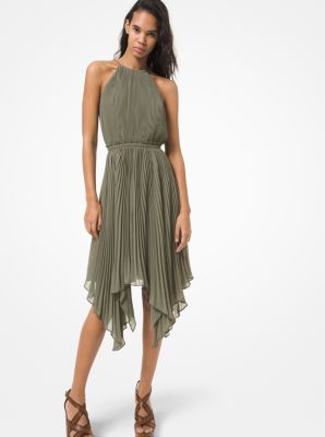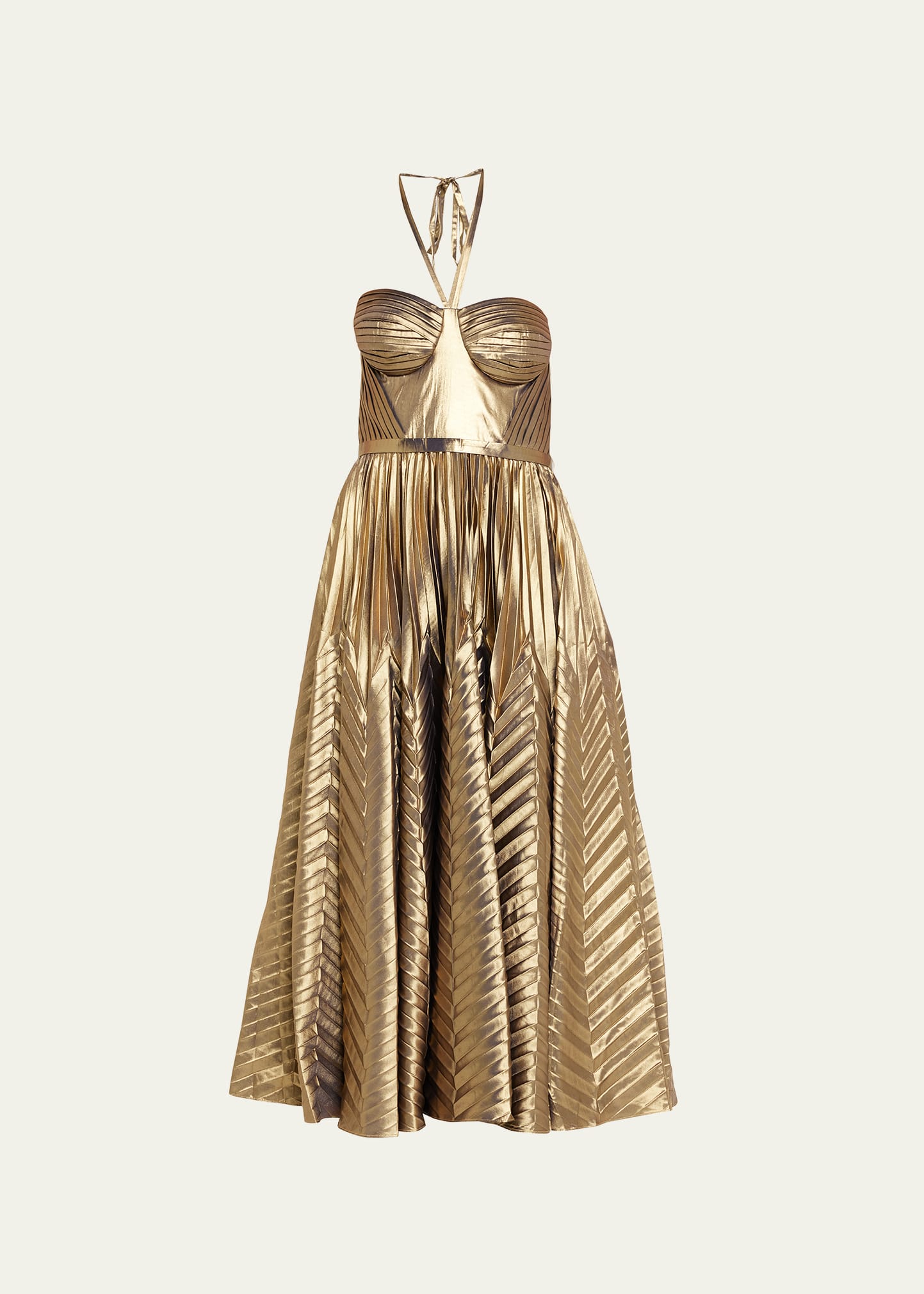 Georgette pleated halter clearance dress, Marchesa Notte Chevron Pleated Georgette Halter Gown Bergdorf clearance