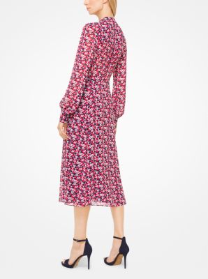 Michael Kors Carnation Floral Georgette Shirt Dress With Belt