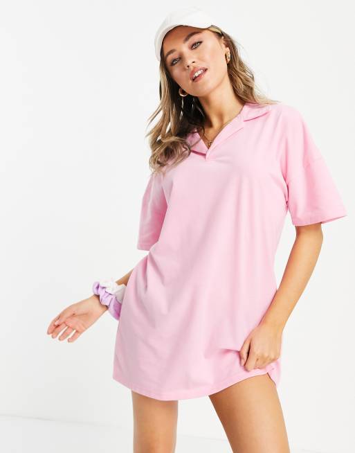 Lola May short sleeve polo shirt dress in pink ASOS