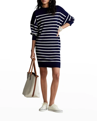 Polo Ralph Lauren Nautical striped Cashmere Dress In Navycream