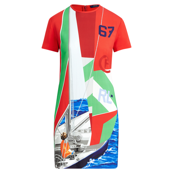 Sailboat Satin Shift Dress for Women Ralph Lauren PT
