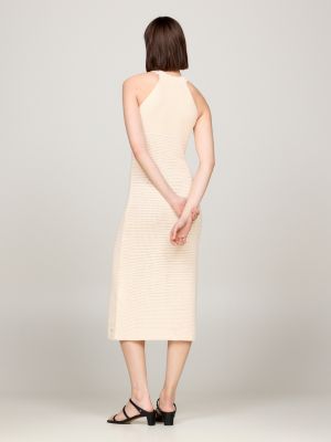 Crochet Stripe Halterneck Maxi Sweater Dress White Tommy Hilfiger