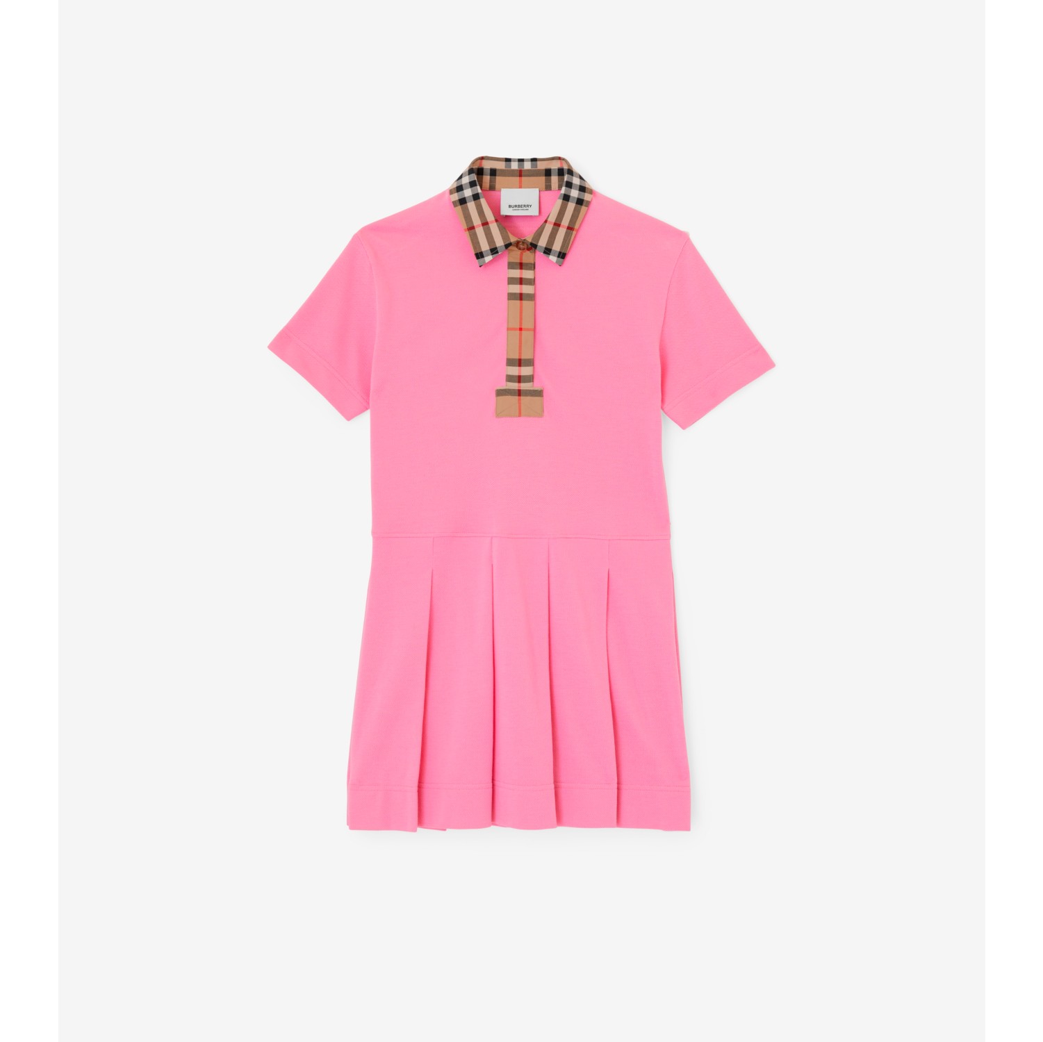 Burberry pink dress clearance shirt, Vintage Check Trim Cotton Polo Shirt Dress in Bubblegum Pink clearance