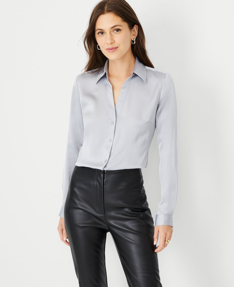 Grey clearance dress blouses, Long Sleeve Shirts for Women Collared Casual Long Sleeve Pocket clearance