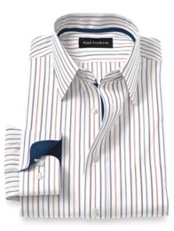 Non iron Cotton Stripe Dress Shirt With Contrast Trim Paul Fredrick