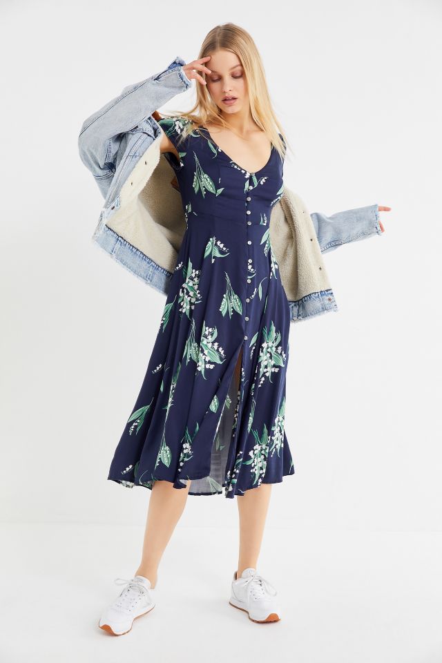 Urban outfitters malena clearance dress, Navy Floral Dress Size S Elements Unleashed clearance