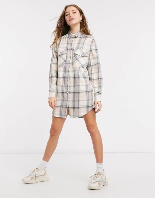 ASOS DESIGN button up mini shirt dress in white plaid ASOS