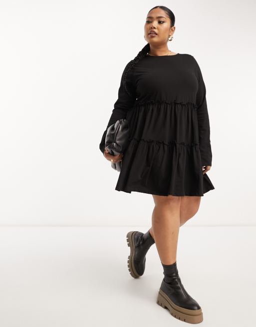 River Island Plus t shirt smock dress in black ASOS
