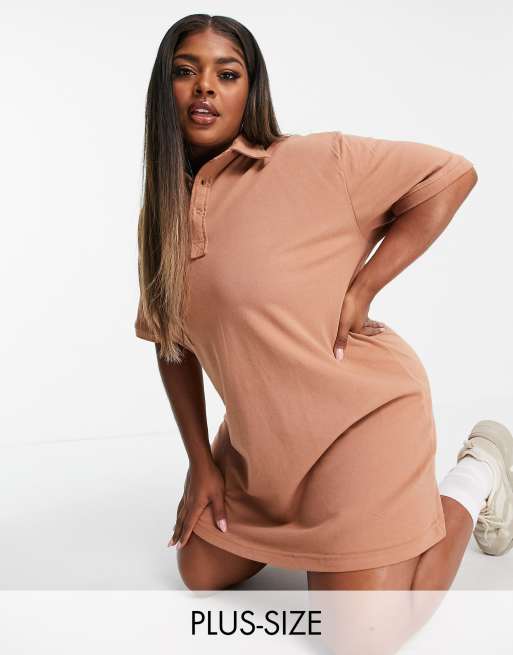 Polo style dress clearance plus size, Threadbare Plus short sleeve polo shirt mini dress in macaroon ASOS clearance
