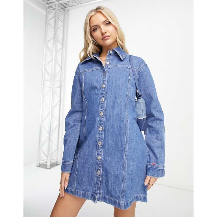 Shay clearance tee dress, Levi s shay denim dress in mid wash blue clearance