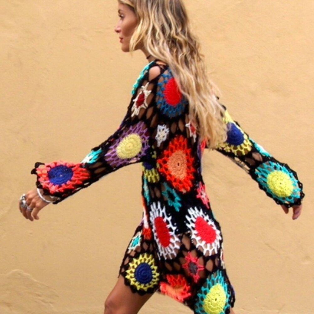 Angie Katsenevas Rainbow Crochet Cover Up Dress