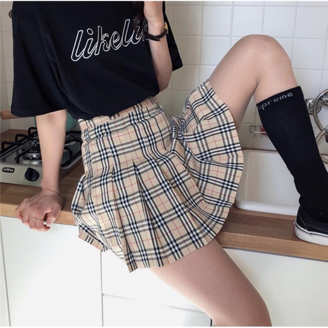 Korean Ulzzang Burberry Style women Plaid school A line pleated