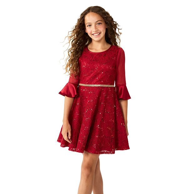 Girls 7 20 Bonnie Jean Bell Sleeve Lace Holiday Dress in Regular