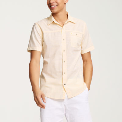 IZOD Saltwater Chambray Mens Classic Fit Short Sleeve Button Down