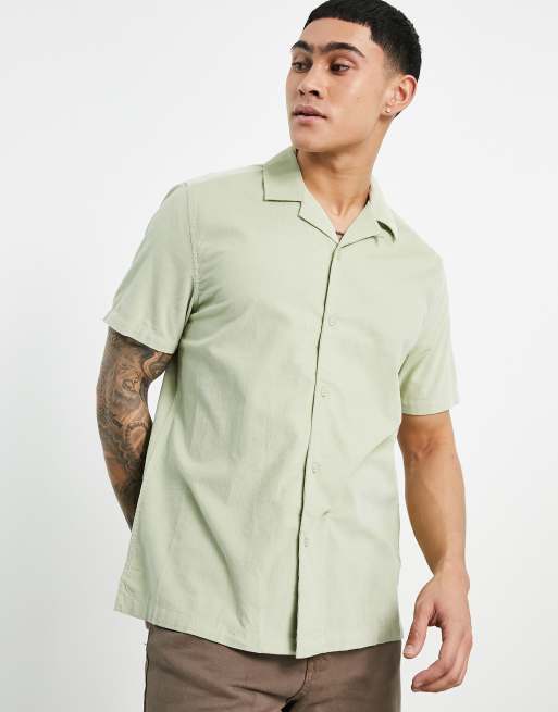 Green short sleeve clearance dress shirt, Topman short sleeve cord shirt in sage green ASOS clearance