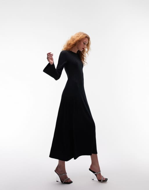 Topshop premium wide rib long sleeve jersey midi dress in black ASOS