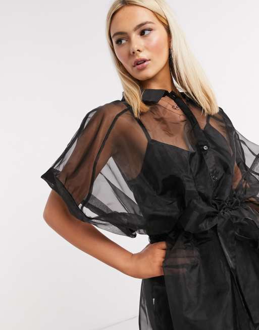 Polka dot organza clearance shirt dress, Love Other Things oversized organza shirt dress in black ASOS clearance