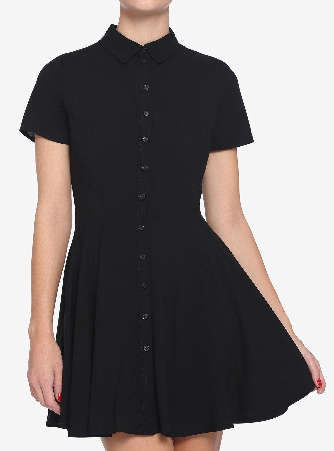 DAILY DELIGHT BLACK COLLARED BUTTON UP SKATER DRESS Mod and