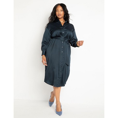 Eloquii Women s Plus Size Satin Button Down Maxi Shirtdress 16