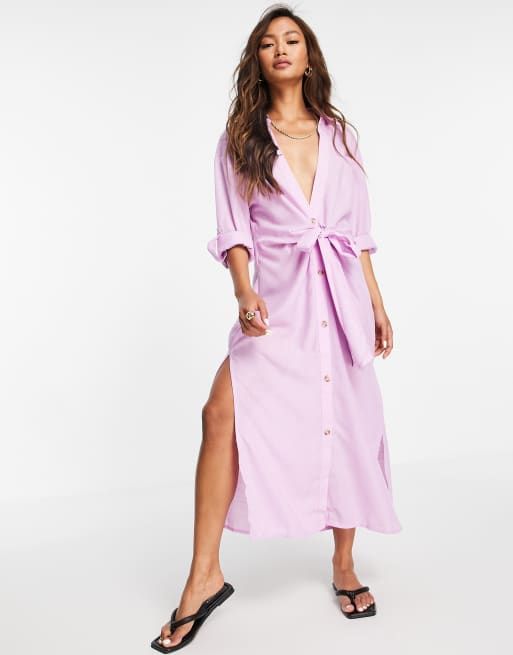 Wilfred long sleeve clearance shirt dress, River Island longline tie front shirt dress in lilac ASOS clearance