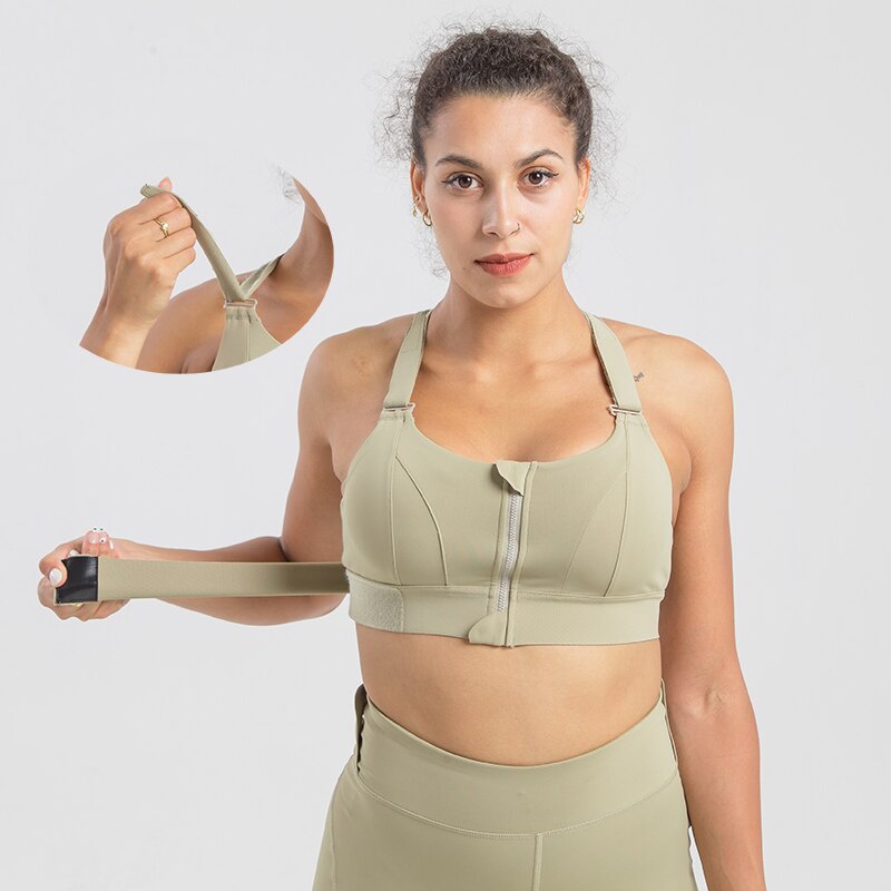 High Impact Sports Bra Velcro Staps Adjustable Zip Front Bra