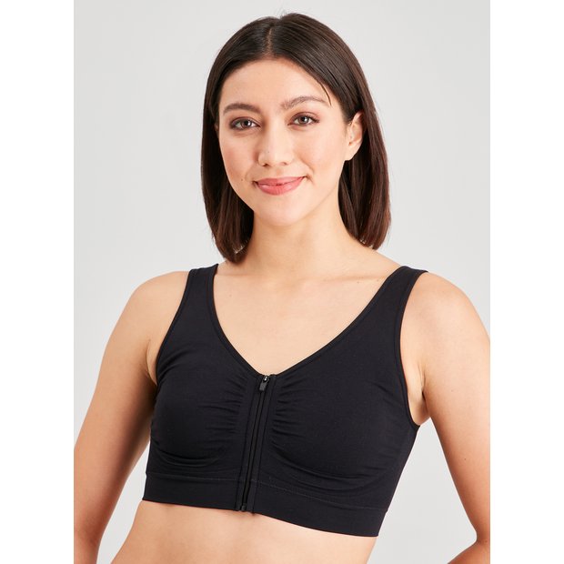 Buy Active Black Zip Front Sports Bra 34E Bras Argos