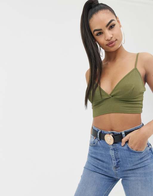 Khaki bralet clearance, ASOS DESIGN lightweight knit beach co ord bralet in khaki clearance