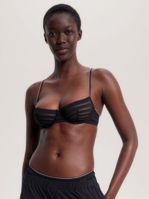 Global Stripe Mesh Lace Unlined Balconette Bra BLACK Tommy